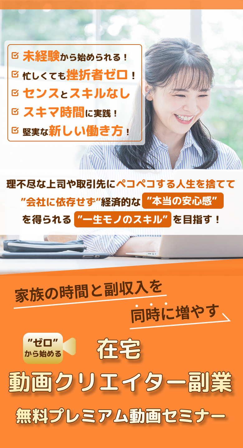 そんな時に「継続力不要」という言葉に惹かれてこの在宅動画編集副業に出会いました。
