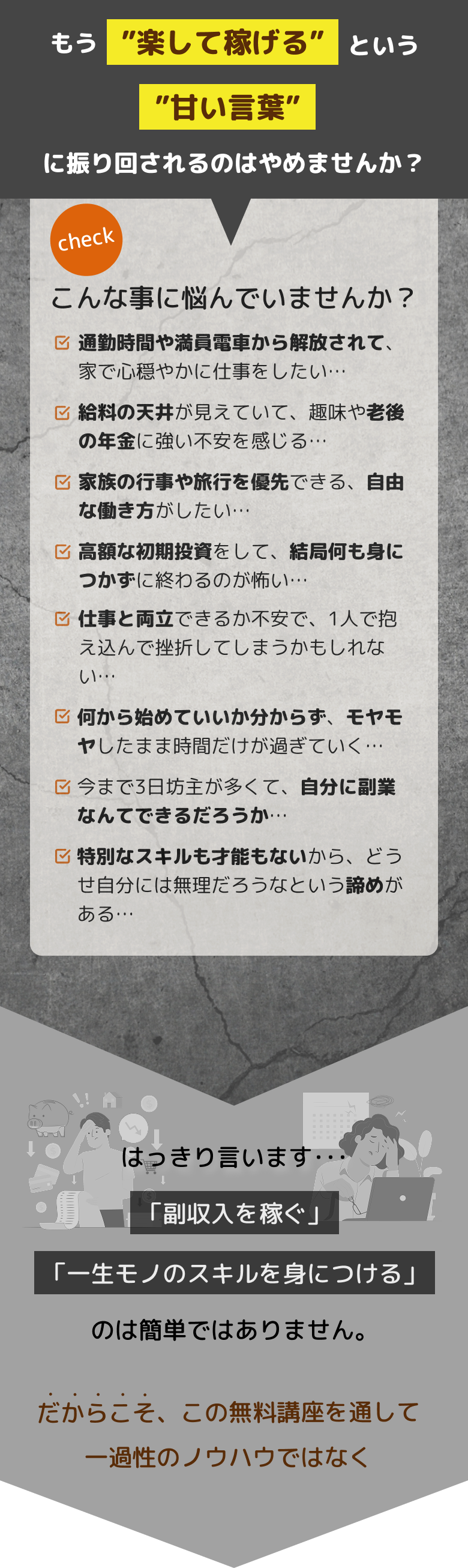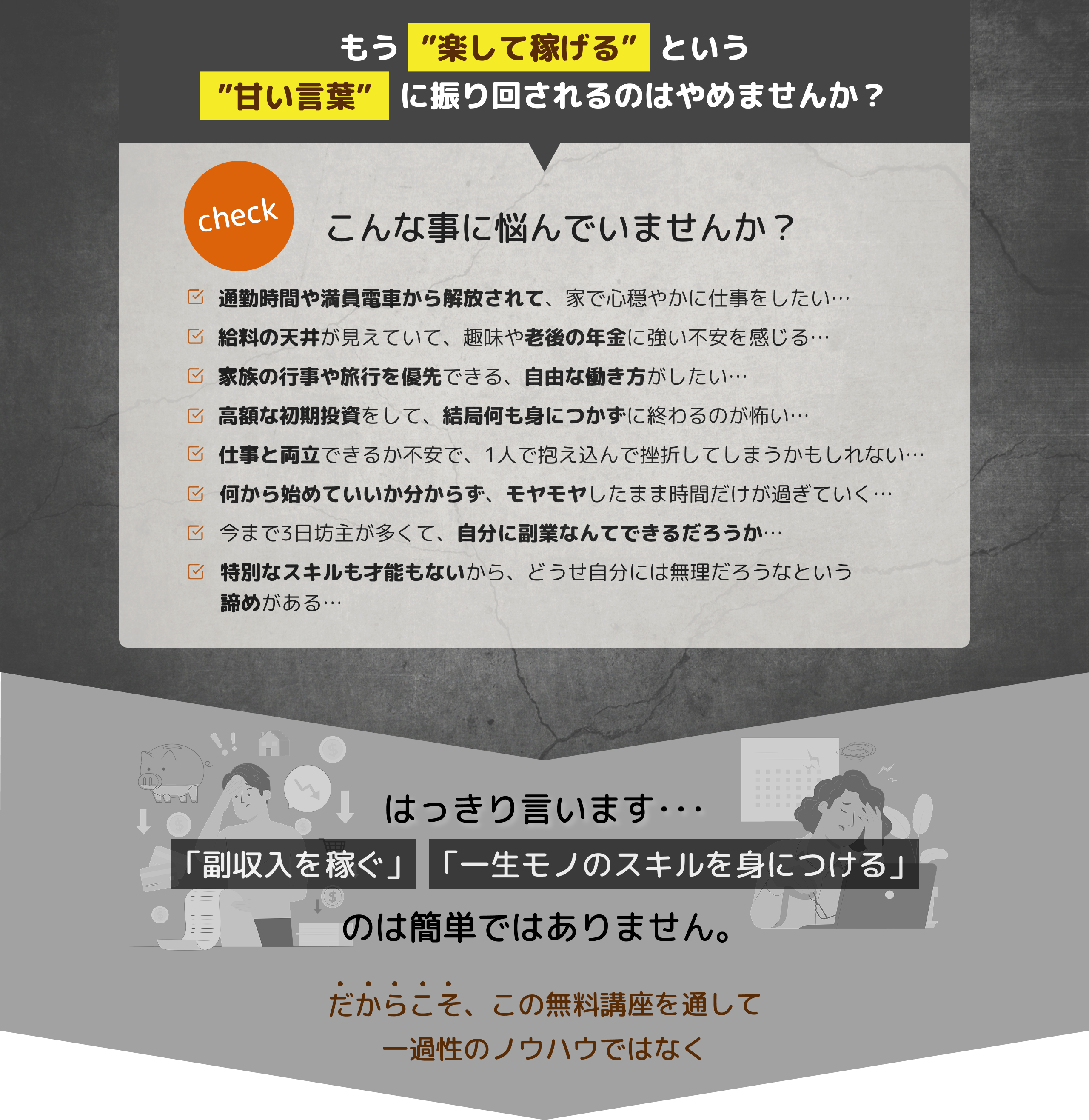 お金も欲しい、でも時間がない、そして「二度と挫折したくない」。 そんな「失敗が許されないあなた」が、副業選びでお金と時間をドブに捨てないための重要なポイントを解説します。 正直、選ぶ副業や「環境」によって、成功確率は天と地ほど変わります。 努力や根性論ではなく、あなたのライフスタイルに合い、確実に収益化できる「正しい選択基準」を手に入れてください。